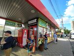 Находится рядом с остановками на автовокзале. Не смотря на расположение, цены здесь не самые высокие. Обслуживают быстро, как и везде есть оплата картой.